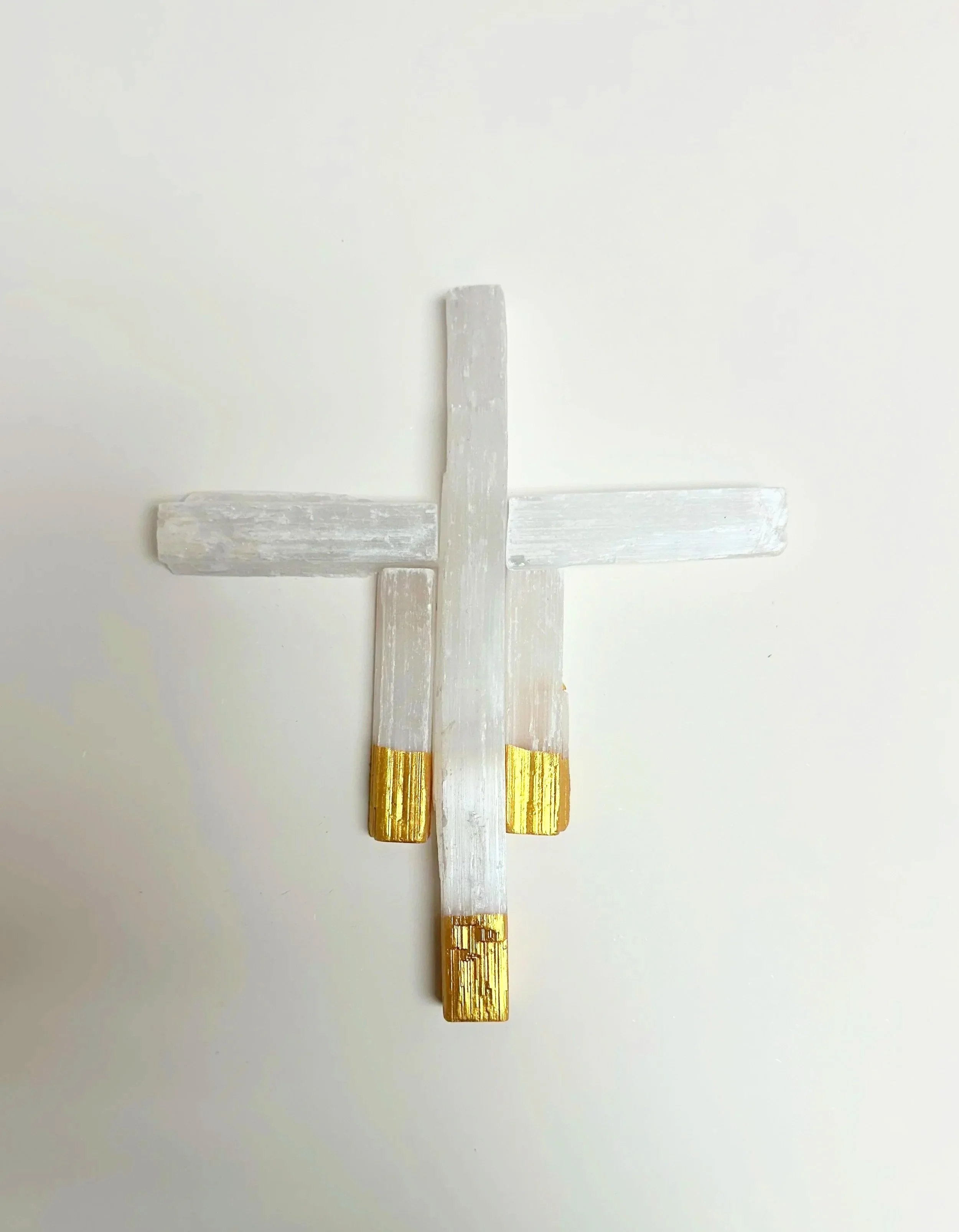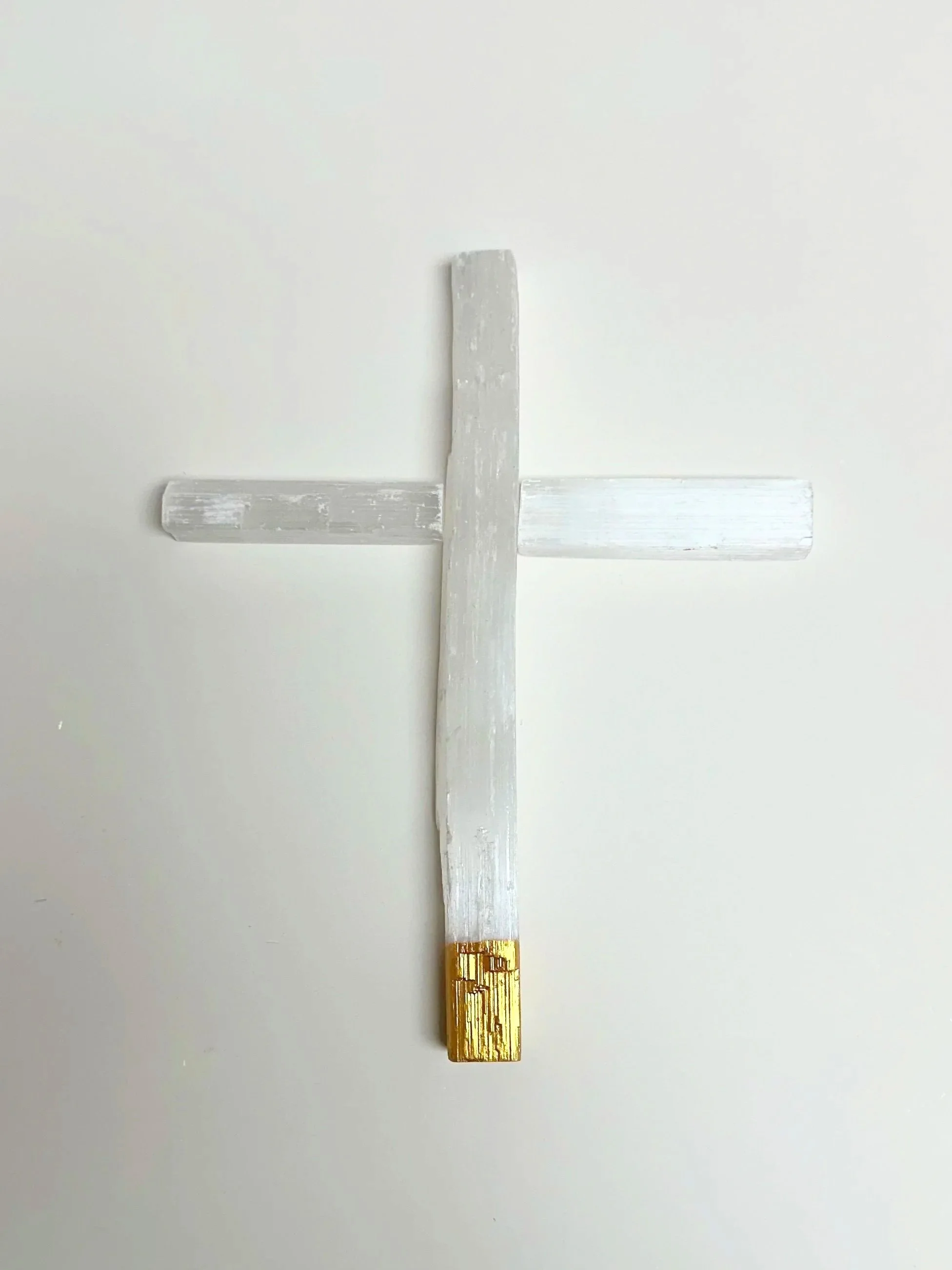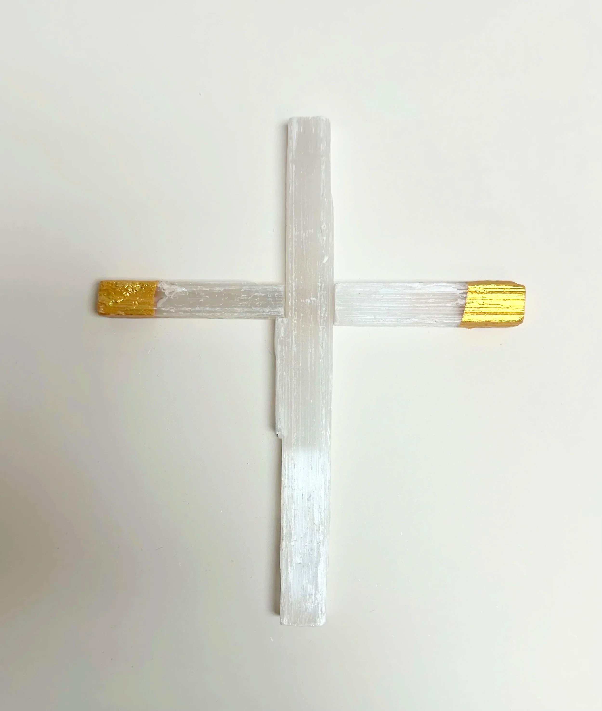 Selenite Cross dipped in gold
