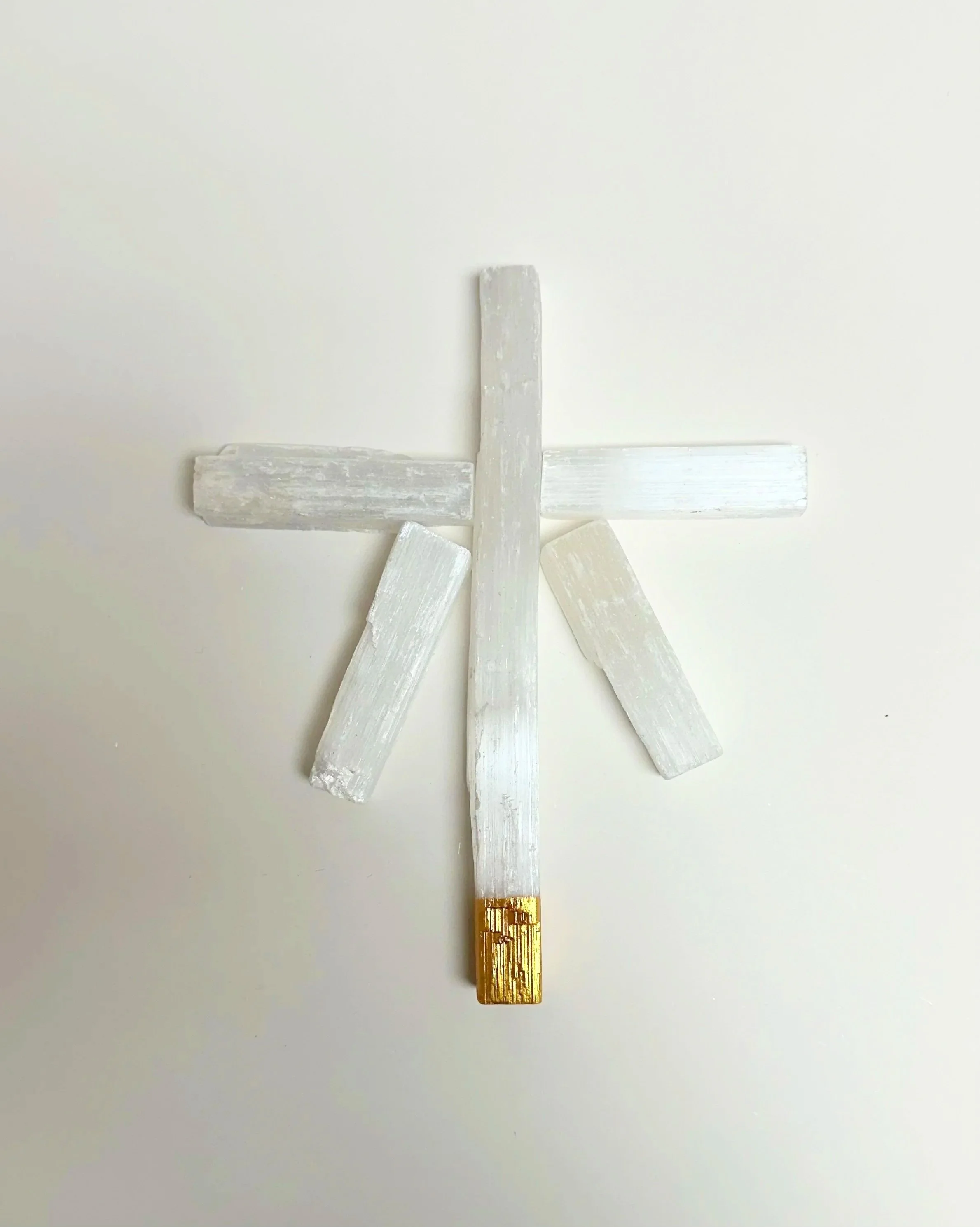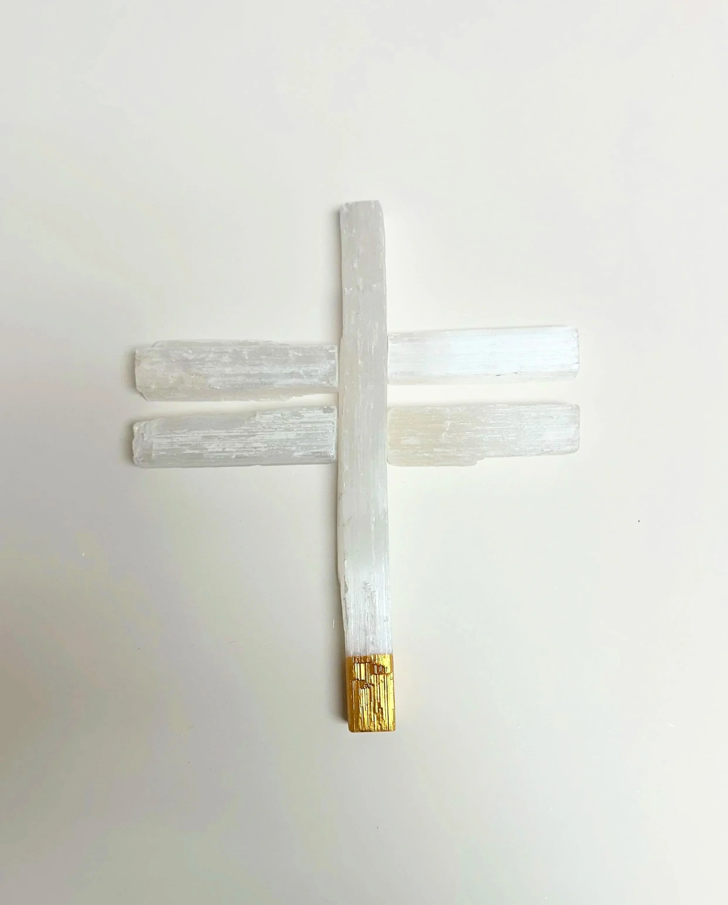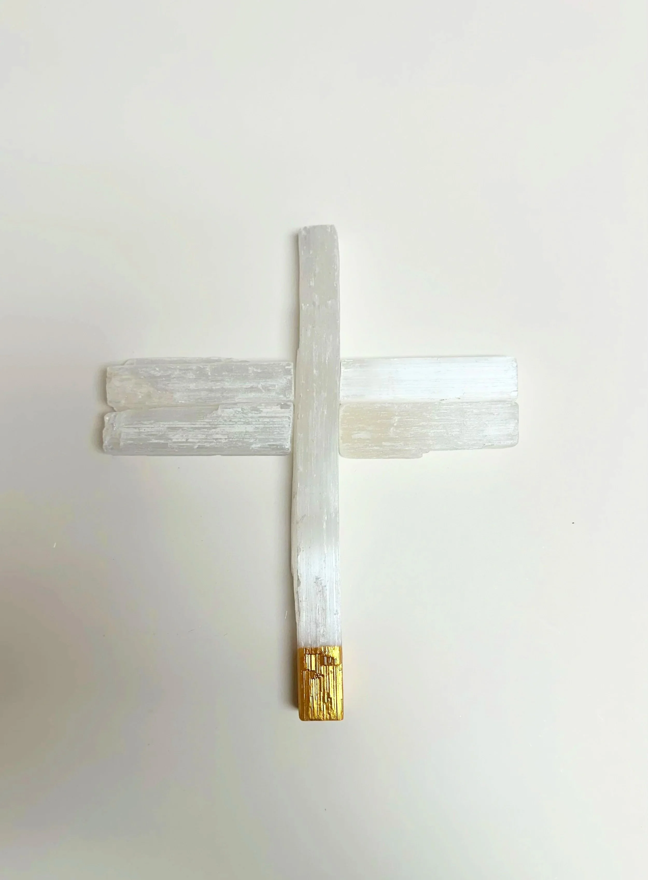 Selenite Cross dipped in gold